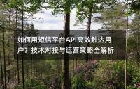 • 如何用短信平臺API高效觸達用戶?技術(shù)對接與運營策略全解析