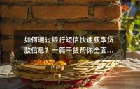 • 如何通過(guò)銀行短信快速獲取貸款信息?一篇干貨幫你全面解讀