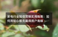 • 家電行業(yè)短信營(yíng)銷(xiāo)實(shí)用指南:如何用貼心服務(wù)贏得用戶(hù)青睞